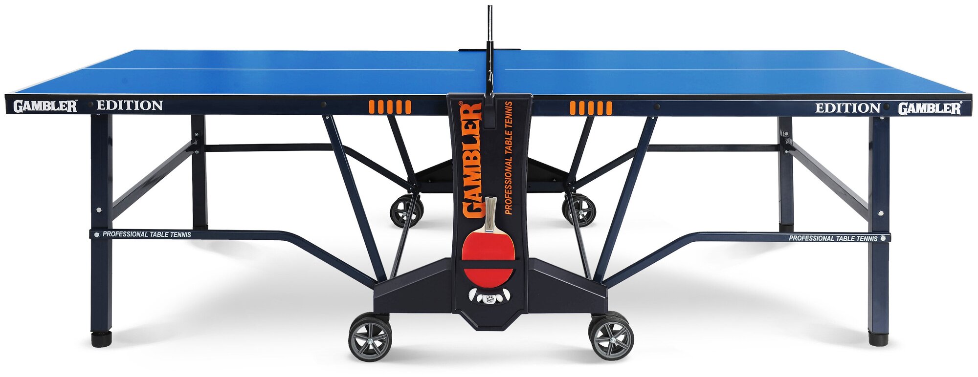 Стол теннисный GAMBLER Edition Indoor BLUE, профессиональный, для помещений, с сеткой и колесами