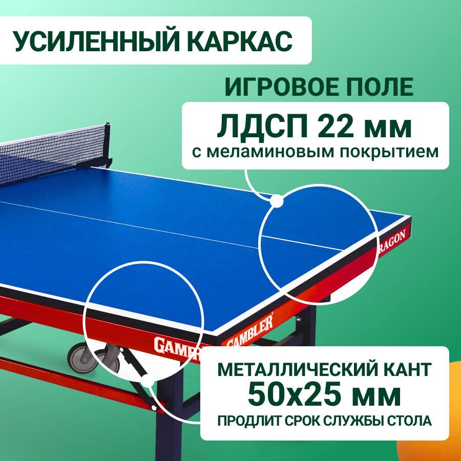 Теннисный стол Gambler DRAGON blue профессиональный, для помещений