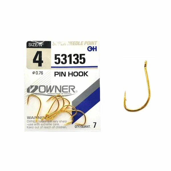 Крючок рыболовный OWNER PIN HOOK № 4 GOLD (уп.7шт)