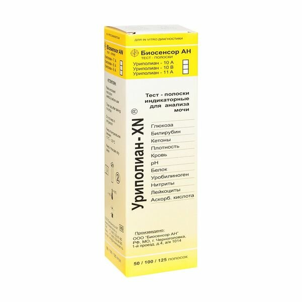 Тест-полоски для мочи Уриполиан 11A, индикаторные, визуальные, 50 шт.