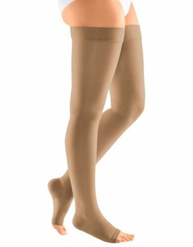 Компрессионные чулки mediven plus, с открытым носком на широкое бедро 108W Medi, размер 5, Бежевый, Стандартная