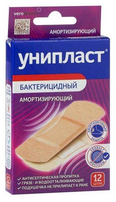 Пластырь унипласт бактер набор 1.9х7.2 N12 (амортизирующий)