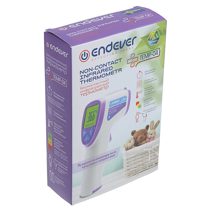 Купить ENDEVER Термометр электронный Endever TEMP-04, инфракрасный, бесконтактный, точность 0.2 °С, белый
