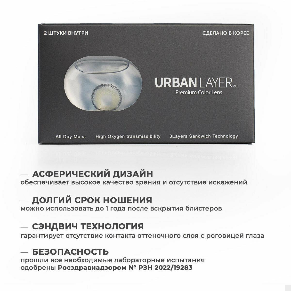 Цветные контактные линзы URBAN LAYER ru Cloud R Gray -1.5 / 14.0 / 8.6 / 2шт.