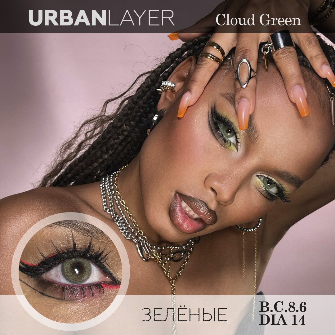Купить Цветные контактные линзы Urban Layer Cloud Green 12 месяцев, 0.00 / 14 / 8.6, 2 шт.