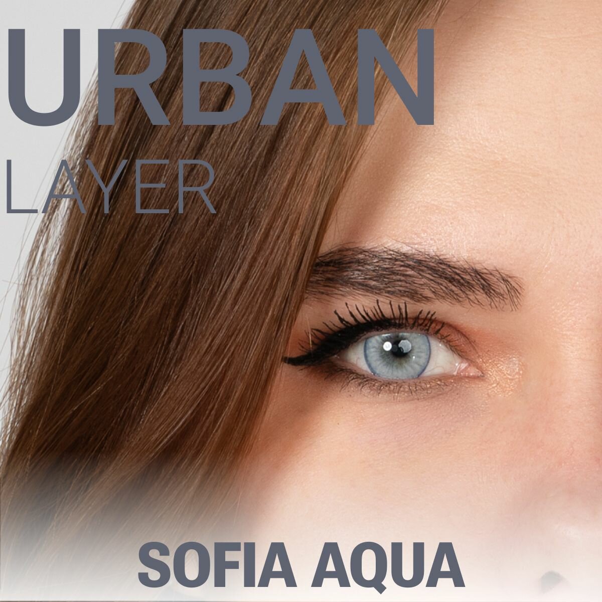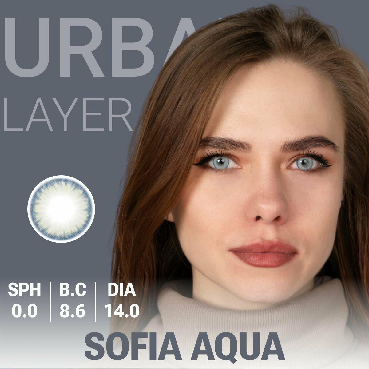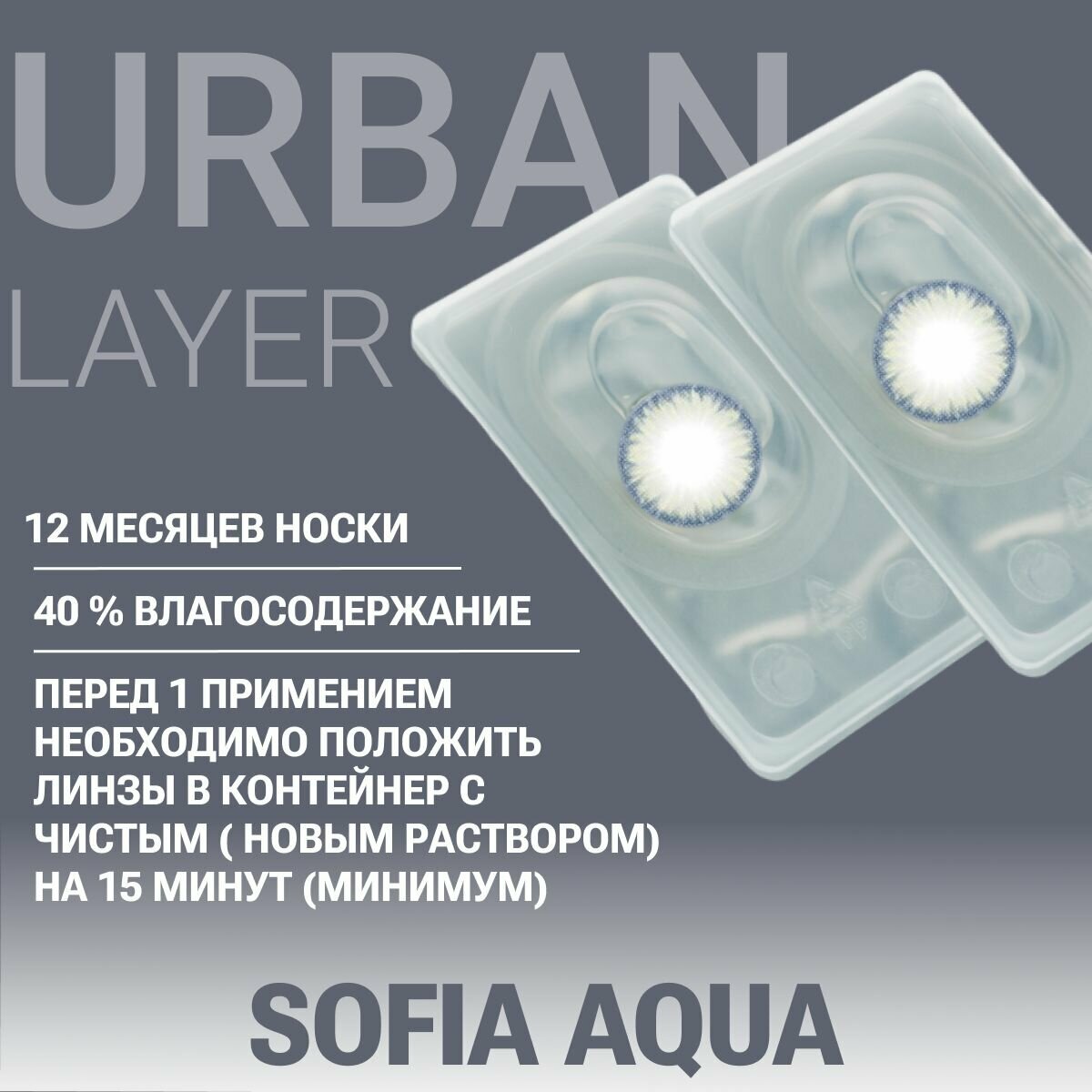Купить Цветные контактные линзы Urban Layer Sofia Aqua 12 месяцев, 0.00 / 14 / 8.6, голубой, светло-серый, 2 шт.