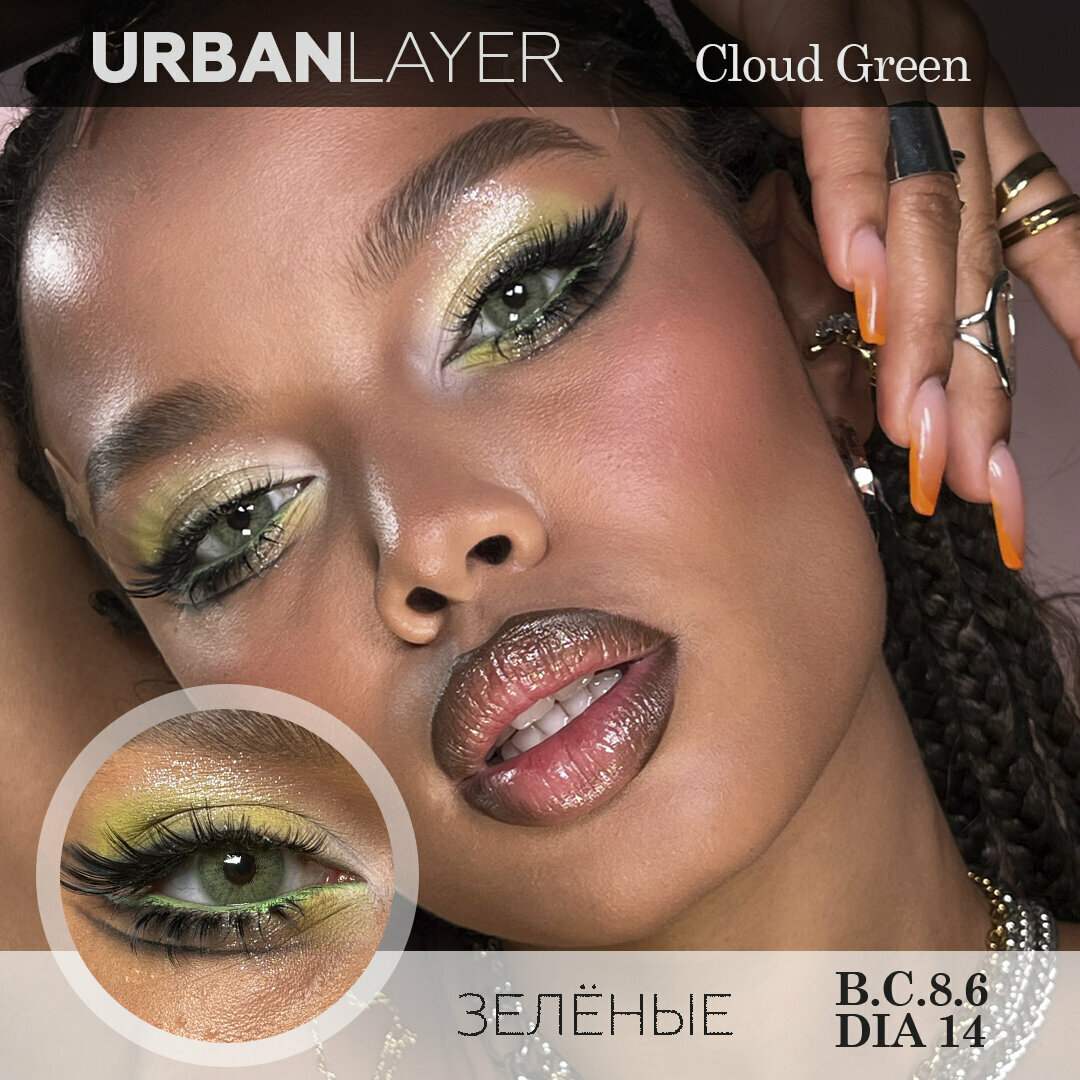 Цветные контактные линзы Urban Layer Cloud R Green 12 месяцев, -7.00 / 14 / 8.6, зеленый, 2 шт.