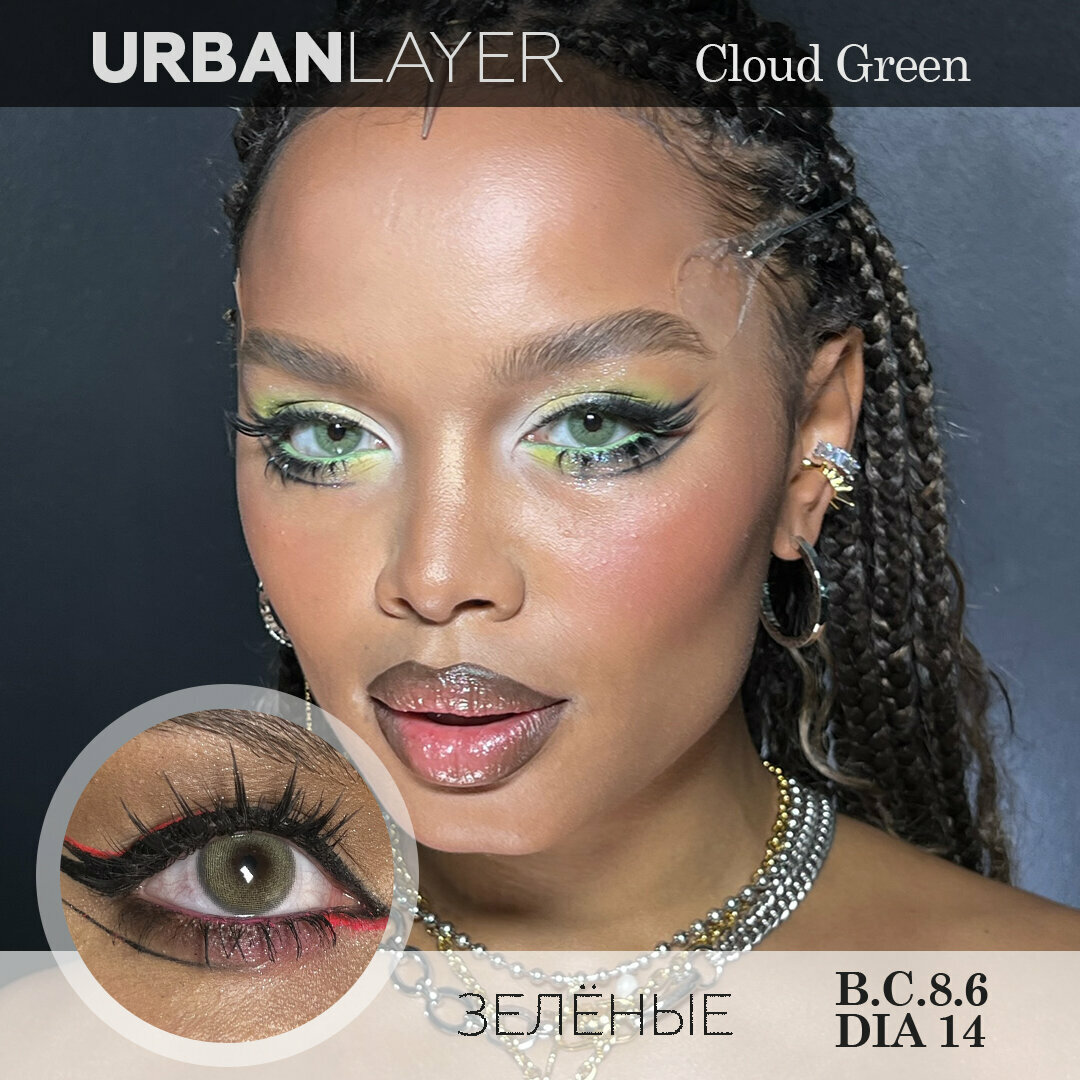 Цветные контактные линзы Urban Layer Cloud R Green 12 месяцев, 0.00 / 14 / 8.6, зеленый, 2 шт.