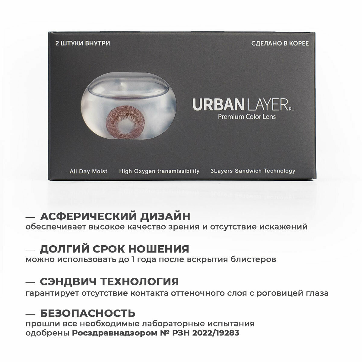 Цветные контактные линзы URBAN LAYER ru Cloud Black 12 месяцев, -3.75 / 14.0 / 8.6, Черный, 2 шт.