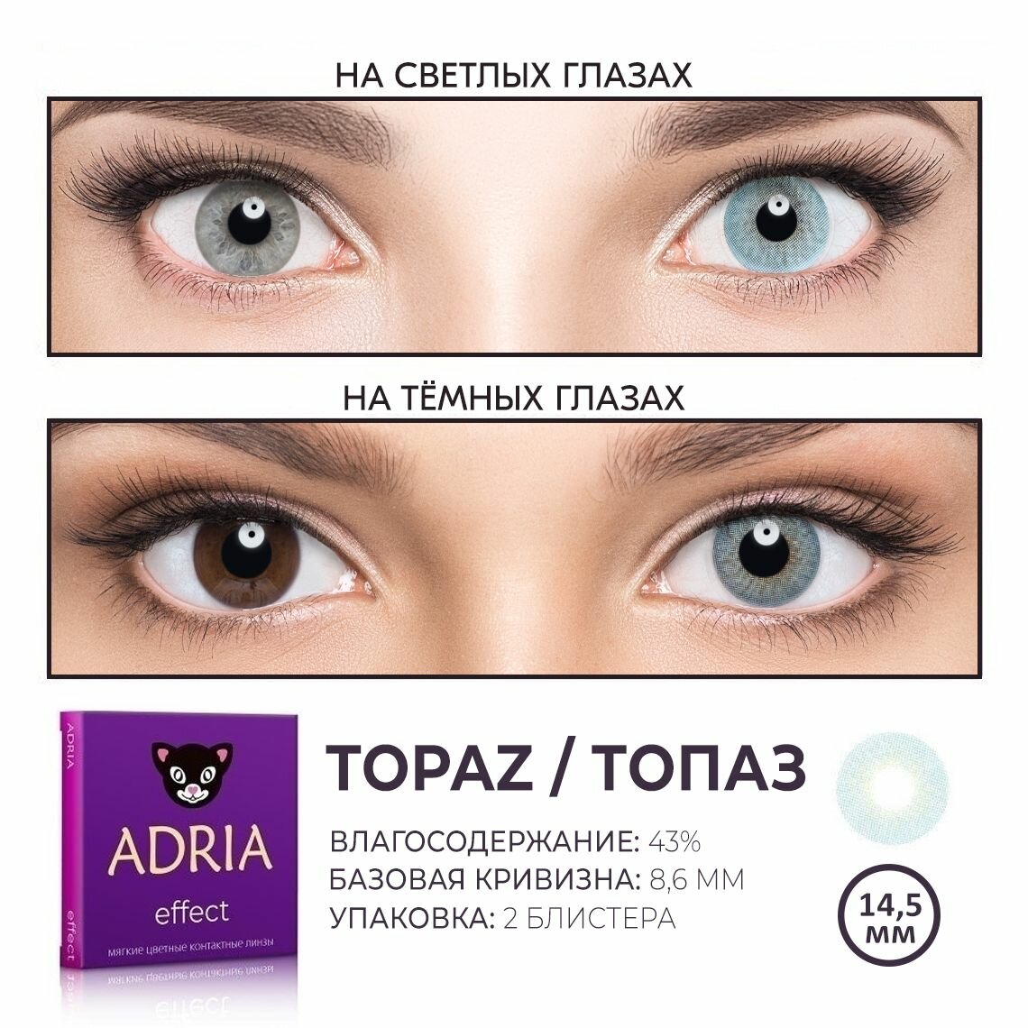 Контактные линзы цветные ADRIA, Adria Effect color, Квартальные, TOPAZ, -9,50 / 14,5 / 8,6 / 2 шт.