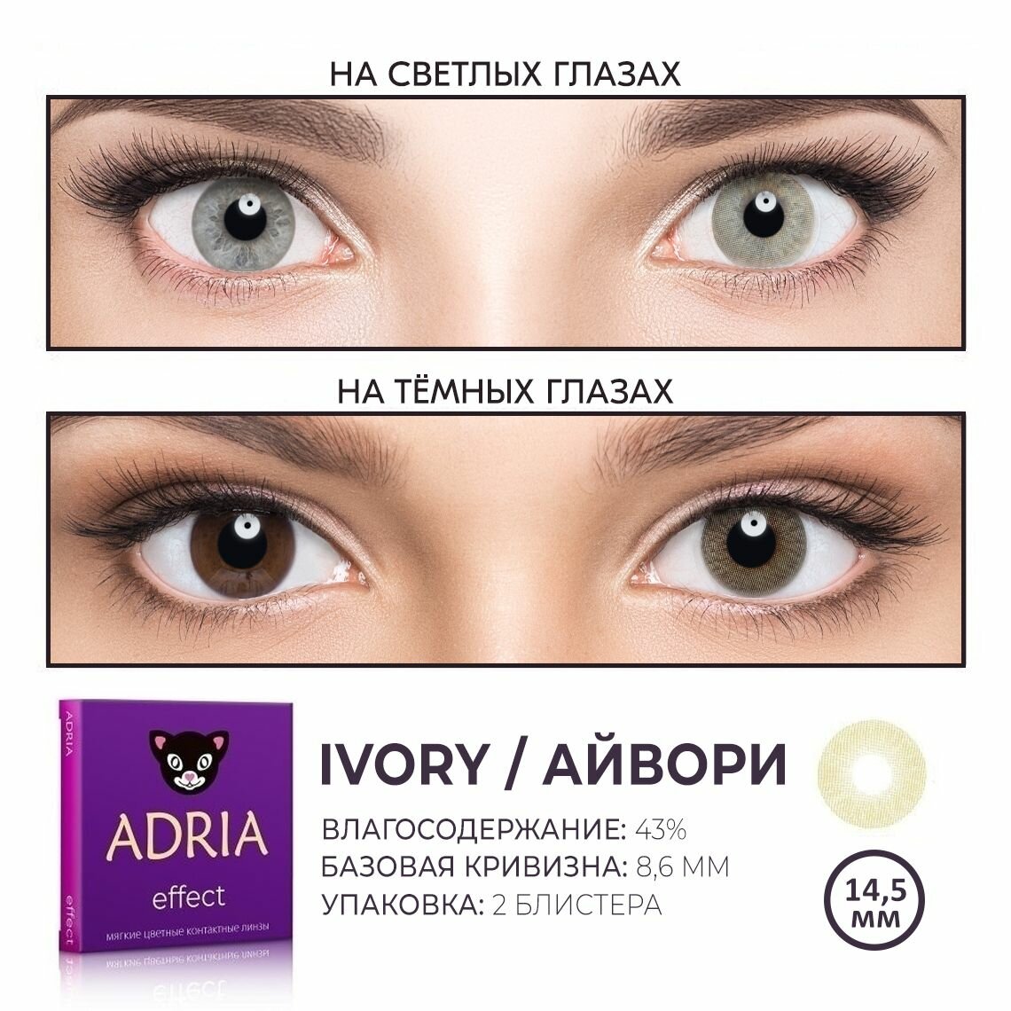 Контактные линзы цветные ADRIA, Adria Effect color, Квартальные, IVORY, -0,00 / 14,5 / 8,6 / 2 шт.