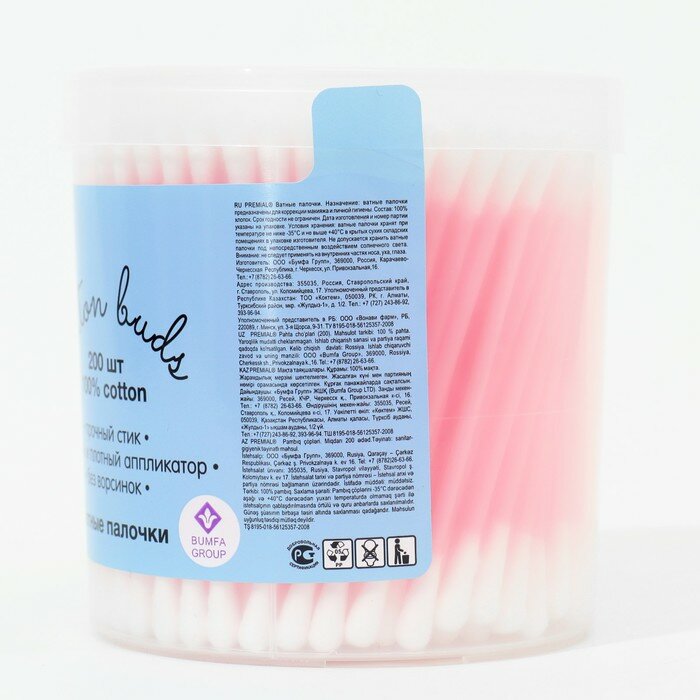 Premial beauty Ватные палочки, в банке цилиндр, 200 шт