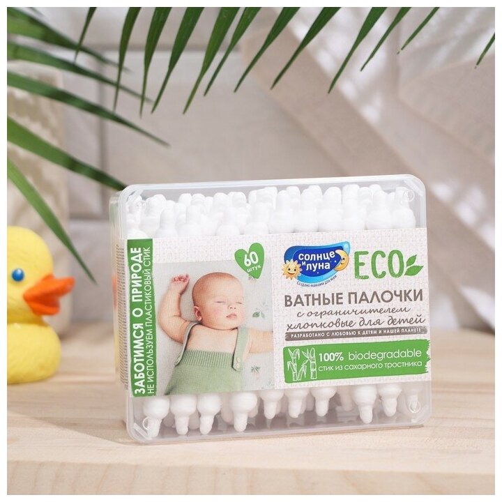 Ватные палочки солнце И луна ECO с ограничителем 0+, 60 штук