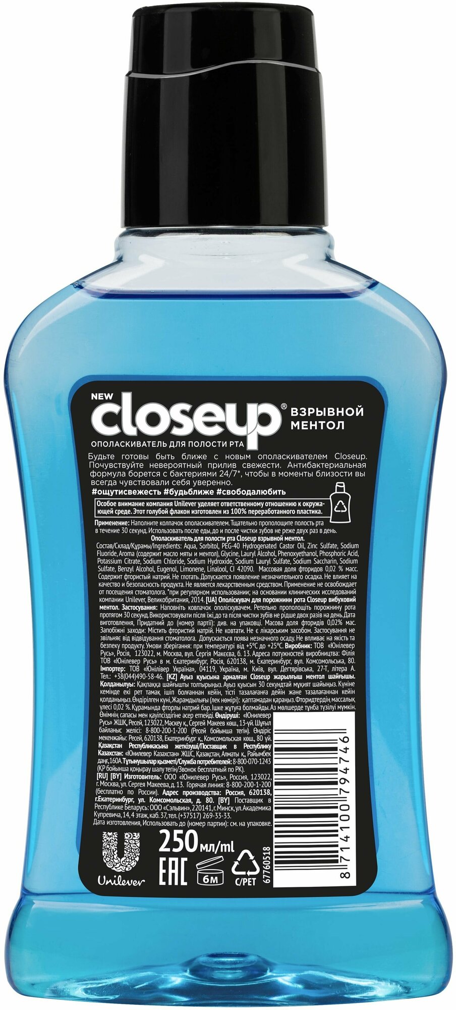 Ополаскиватель для рта Closeup Взрывной Ментол, 250 мл