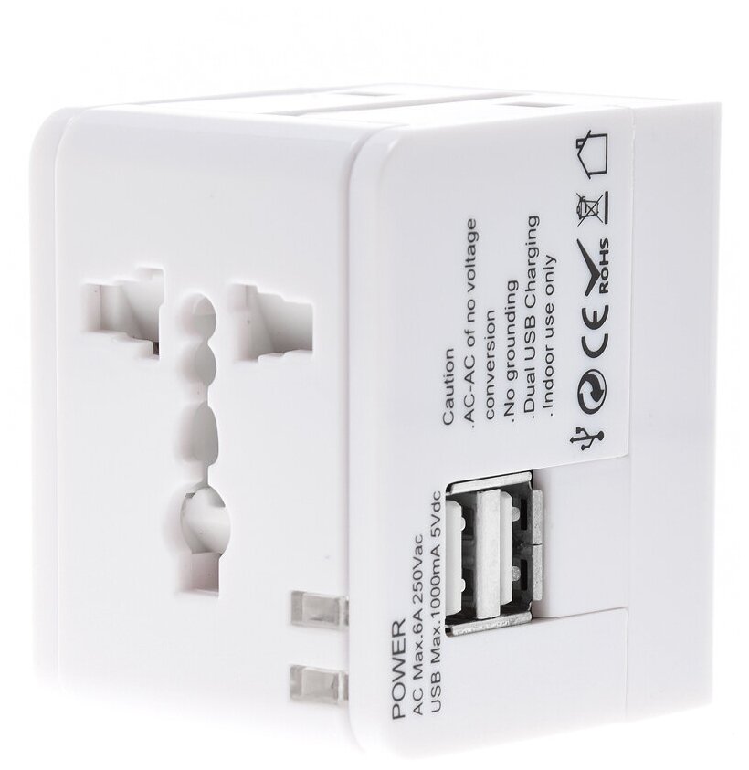 Переходник сетевой тревел адаптер для розеток GSMIN Travel Adapter HHT148 (2x USB 1А, Max 6А) для американской, китайской вилки на евровилку (Белый) интересное: