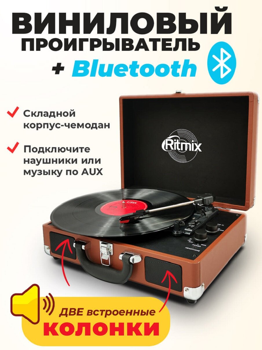 Виниловый проигрыватель Ritmix LP-160B Brown, с Bluetooth .