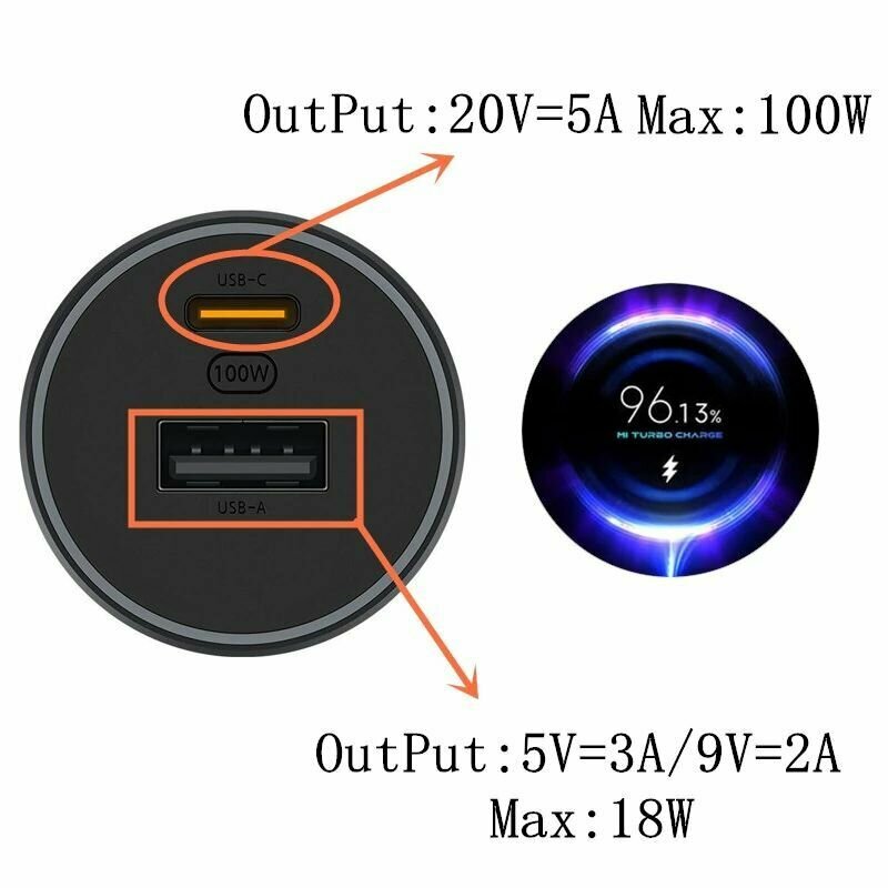 Зарядный комплект Xiaomi Car Charge 1A1C 100W, 100 Вт, Global, черный