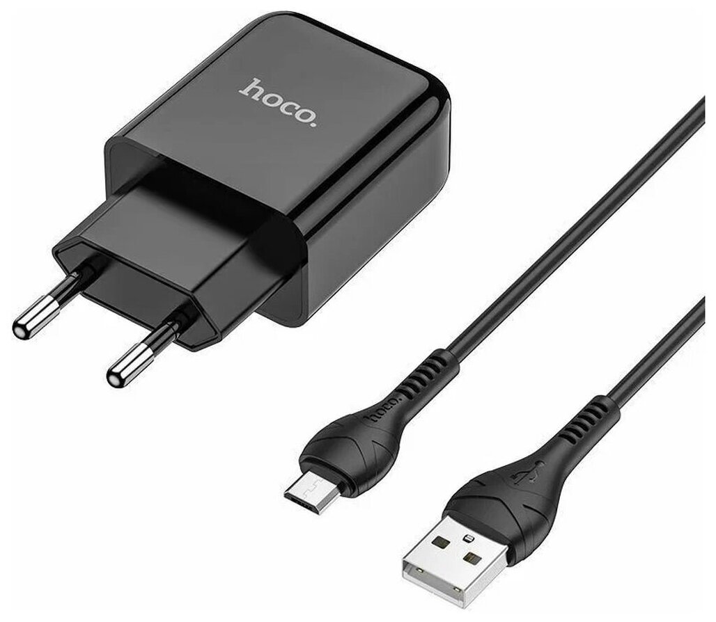 Сетевое зарядное устройство Hoco N2, USB - 2.1 А, кабель microUSB 1 м, черный