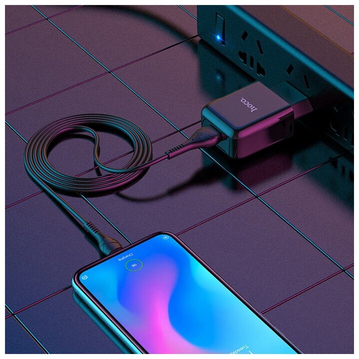 Сетевое зарядное устройство (СЗУ) Hoco N2 Vigour (USB) + кабель MicroUSB, 2.1 А, черный