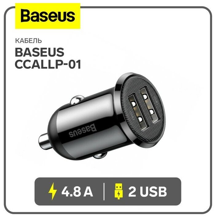 Автомобильное зарядное устройство Baseus Grain Pro, 2USB, 4.8 А, чёрное