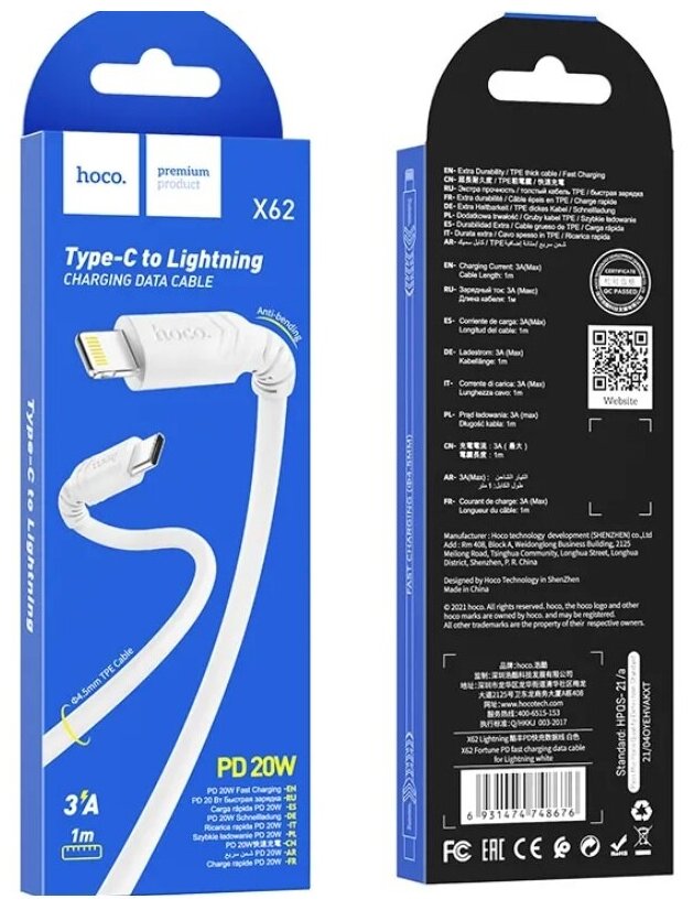 Кабель для Samsung & IPhone Hoco Cable X62 Fortune Type-C to Samsung & IPhone White интересное: