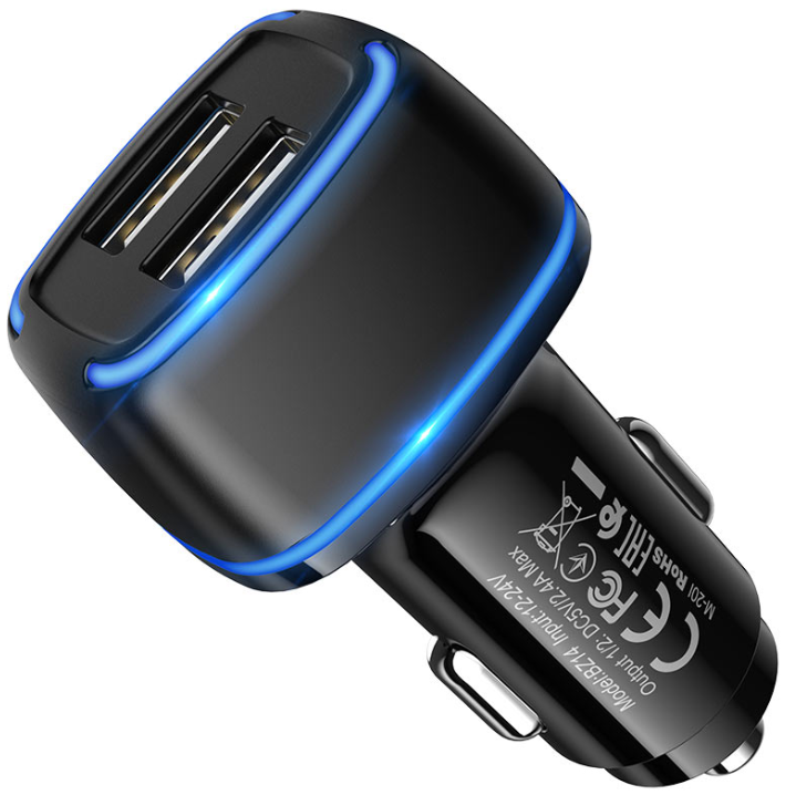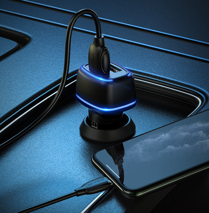 Автомобильное зарядное устройство с подсветкой, двумя портами USB, кабелем micro-USB BOROFONE BZ14.