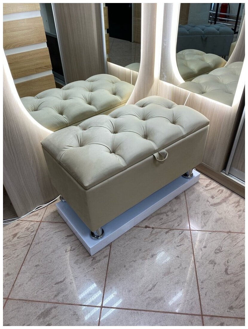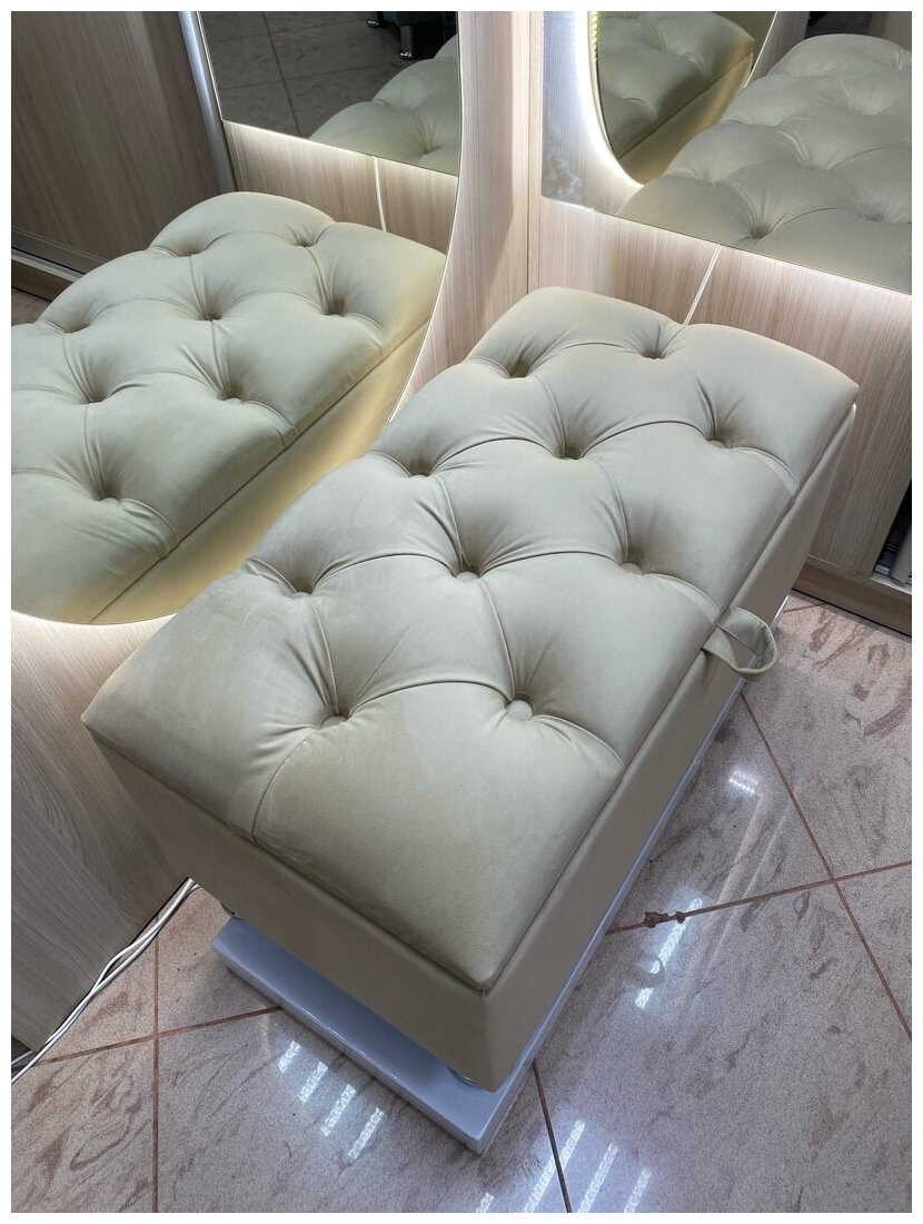 Банкетка с каретной стяжкой / Пуфик банкетка в прихожую / светло-бежевый интересное: