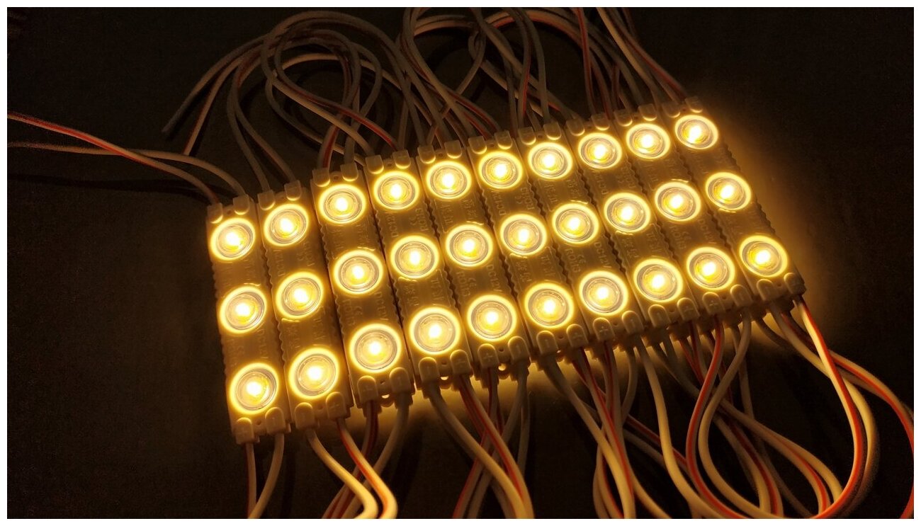 Светодиодный модуль линзованный SMD 2835, 3 LED, 12 В, 1.5 Вт, 105-110лм, IP65, теплый белый (3000к) интересное: