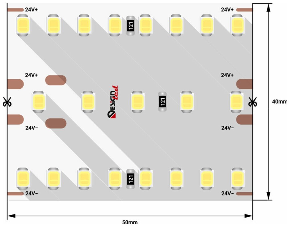 Светодиодная лента DesignLed "DSG2420-24-NW-33" 24V IP33 SMD2835 40 Вт/м, 5300 Лм/м, 420 диодов на 1 метр, ширина 40 мм, цвет белый