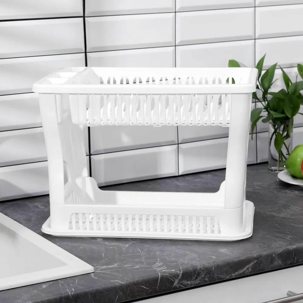 IDEA Сушилка для посуды 2-х ярусная, 42×27×32 см, цвет белый