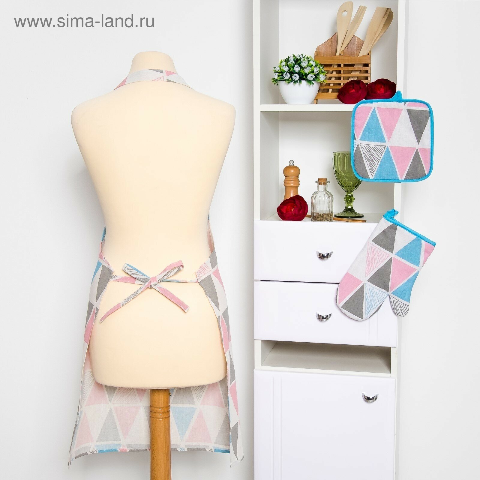 Купить Доляна Набор Доляна «Мозаика», фартук/прихватка/варежка, рогожка
