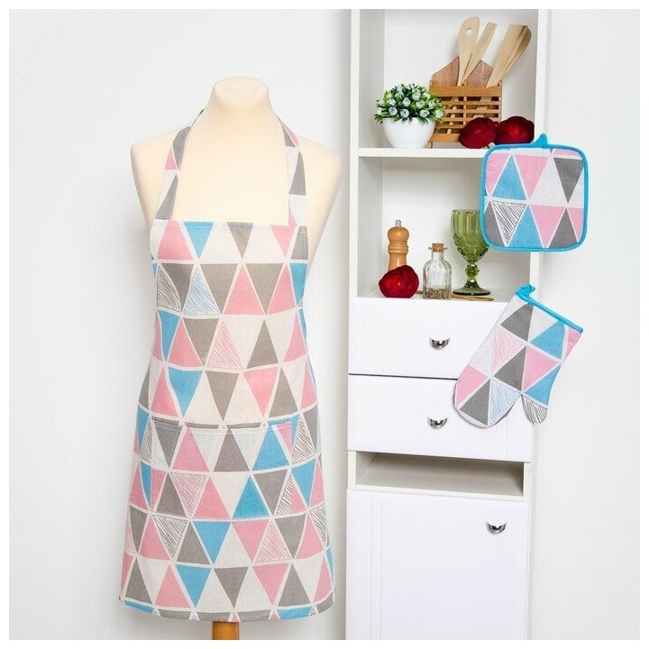 Купить Набор Доляна Мозаика, фартук/прихватка/варежка, рогожка Доляна 3580568 .