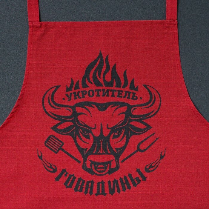 Фартук мужской кухонный «Укротитель говядины», 77×75см, 100 % хлопок, бордовый