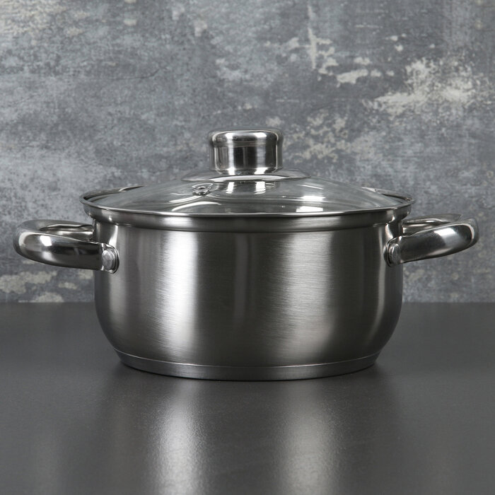 Кастрюля из нержавеющей стали Доляна «Гретте», 1,6 л, d=16 см, стеклянная крышка, капсульное дно, индукция