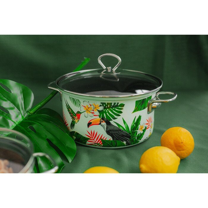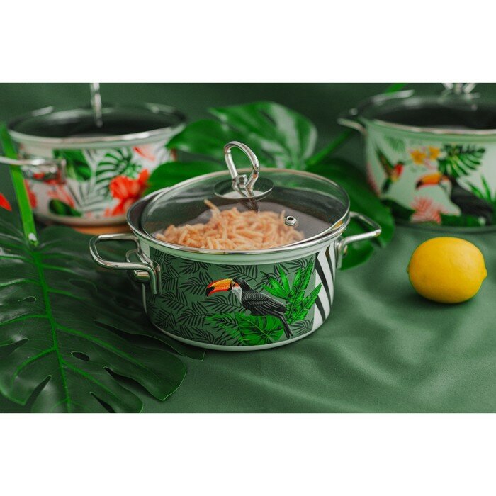 Набор кастрюль "Тропики", 3 предмета: 1.9 л, 2.5 л, 3.7 л, стеклянные крышки, индукция