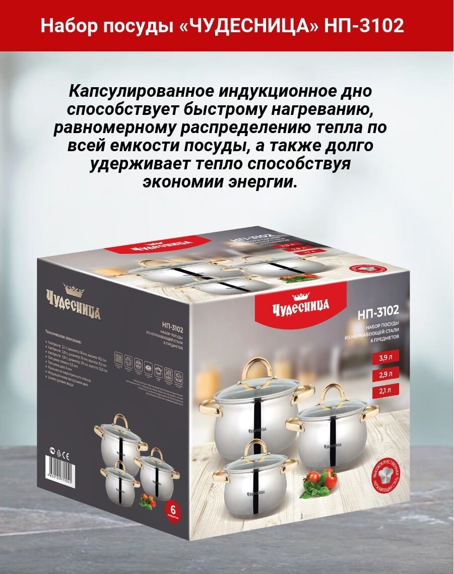 Купить Набор кастрюль Чудесница НП-3102 из нержавеющей стали, 6 предметов
