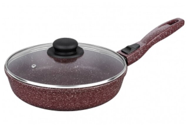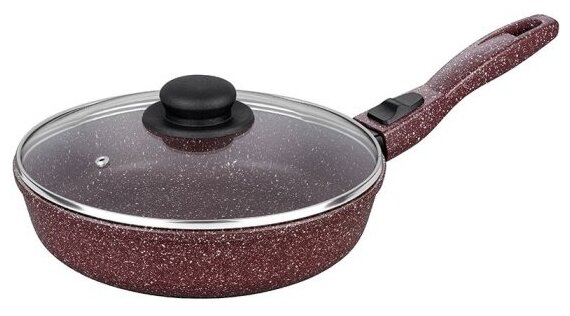 Сковорода глубокая Elan Gallery гармония вкуса Рубин, с крышкой, со съёмной ручкой, 24 см