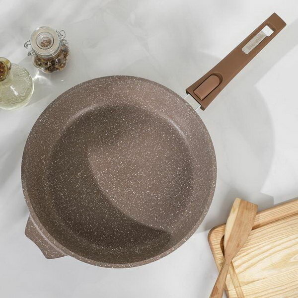 Сковорода «Гранит», d=28 см, съёмная ручка, стеклянная крышка, антипригарное покрытие, цвет коричневый (1 шт.)