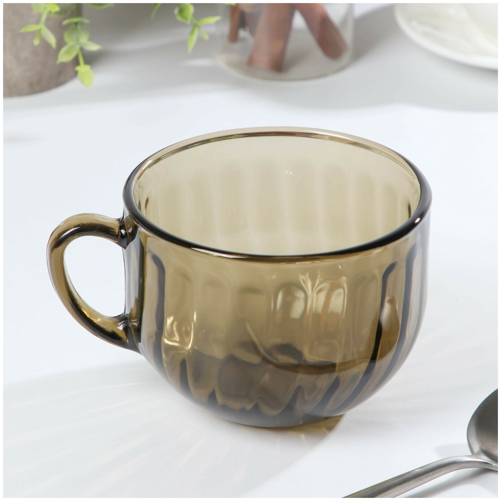 Бульонница стеклянная Ca del vetro "Elica", супница, кружка глубокая для супа с ручкой, цвет коричневый, 670 мл