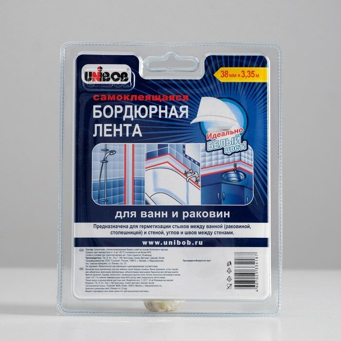 Ниже Вы можете прочитать отзывы на Самоклеящаяся бордюрная лента для ванн и раковин UNIBOB 38мм х 3,35м белая./В упаковке шт: 1, ознакомится с подробными характеристиками, посмотреть интересные обзоры и фотографии на Самоклеящаяся бордюрная лента для ванн и раковин UNIBOB 38мм х 3,35м белая./В упаковке шт: 1.