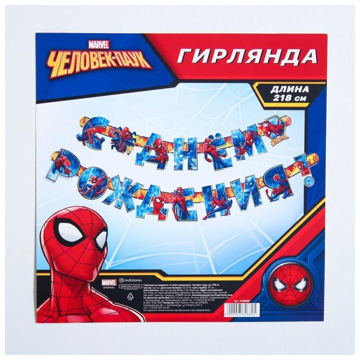 Гирлянда на люверсах Marvel "С Днем рождения!", Человек-паук, 218 см (4332680)