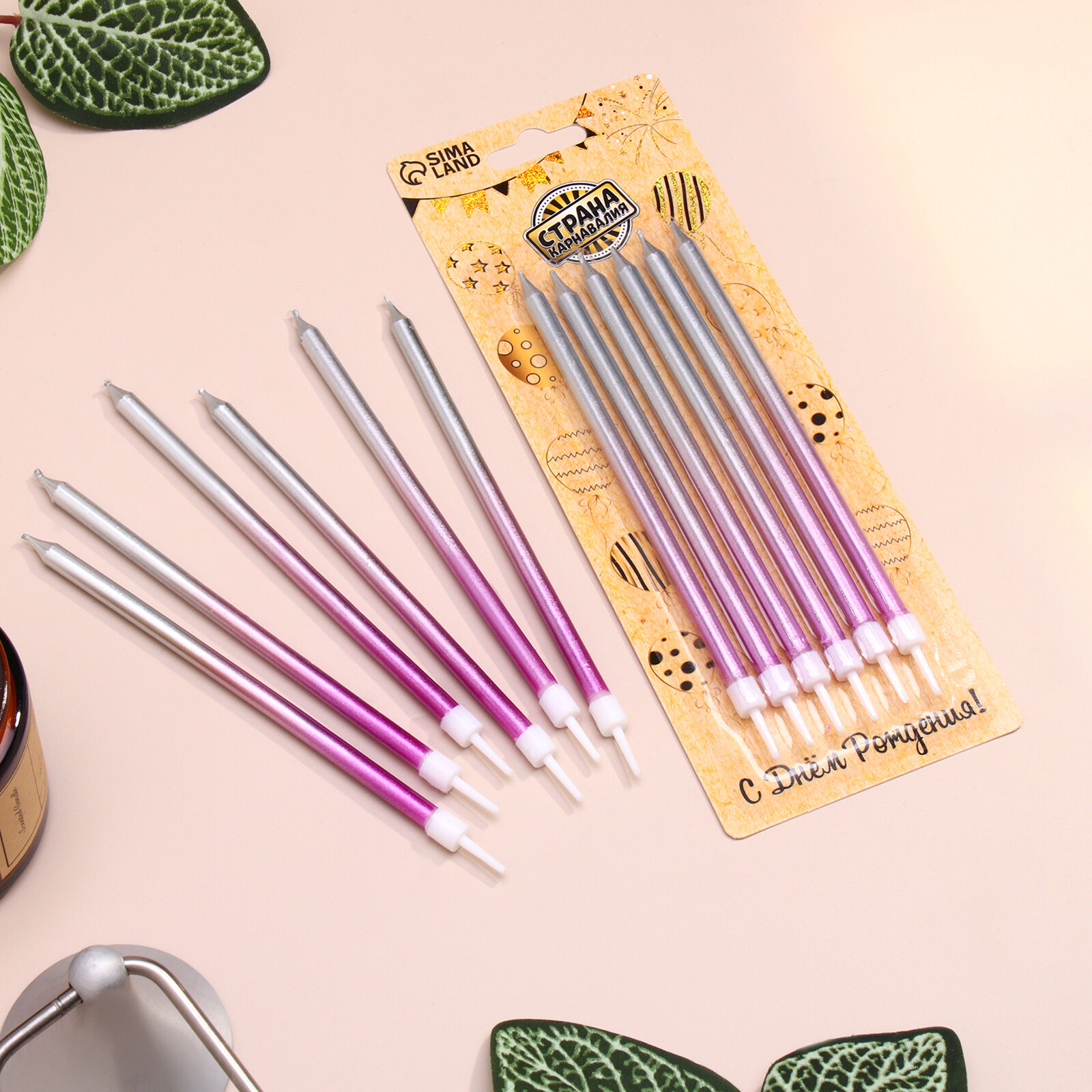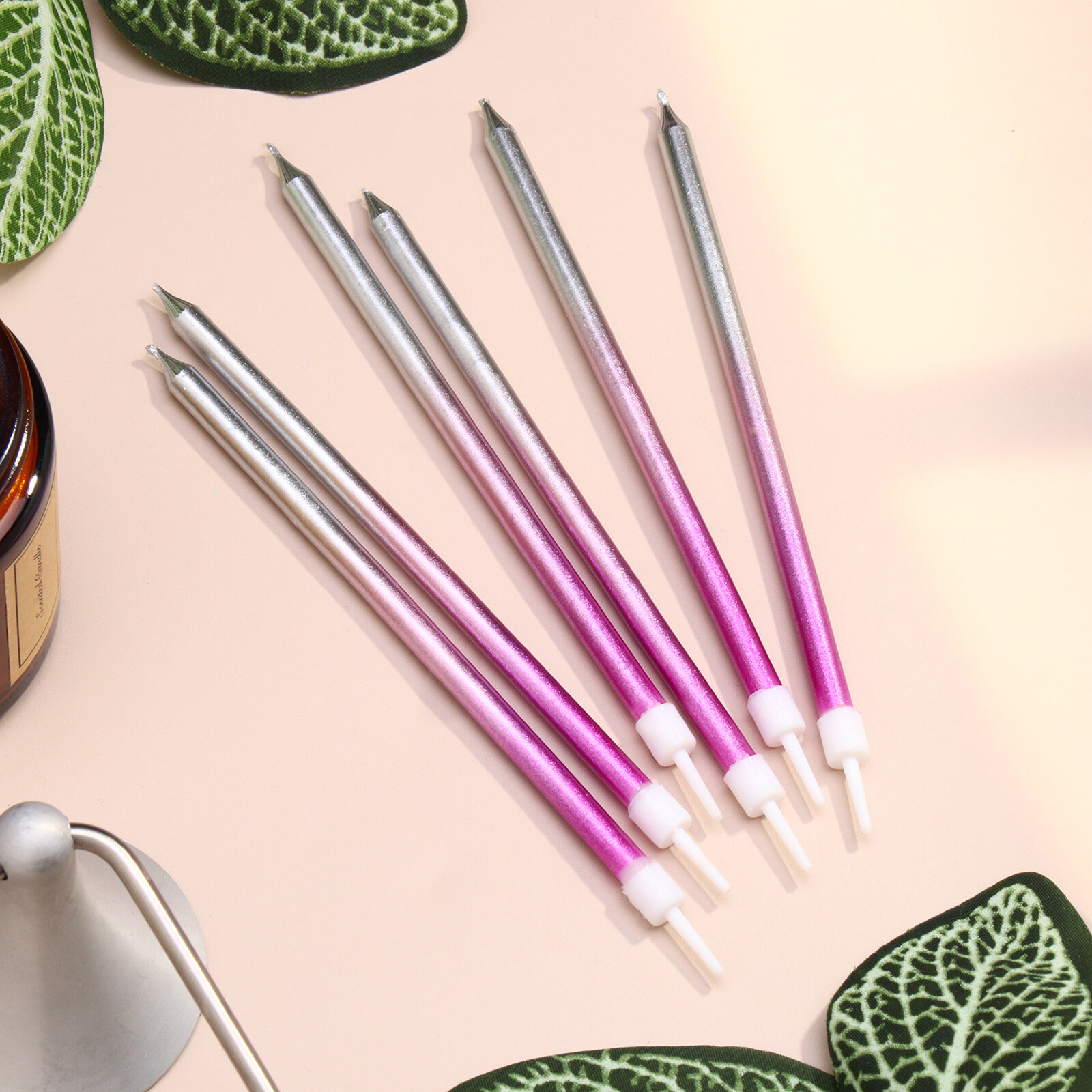 Купить Свечи в торт "Ройс. Градиент", 6 шт, высокие, 13 см, фиолетовый, розовый, серебро