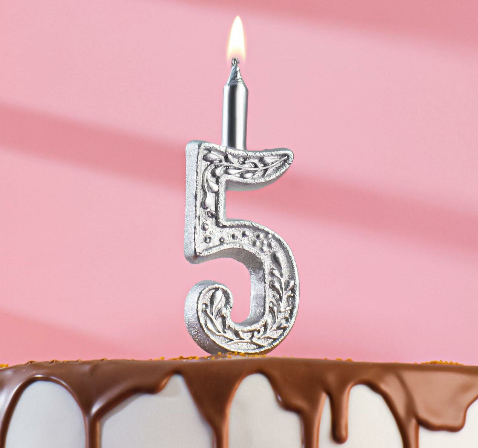 Свеча для торта цифра "Серебряный узор", 12.5 см, цифра "5" интересное: