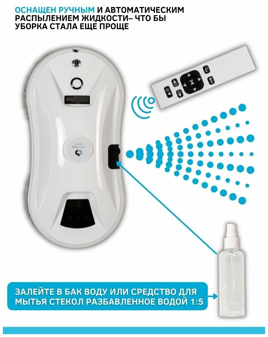 Робот мойщик окон Cleanbot Ultraspray с распылителем + набор салфеток 12шт интересное: