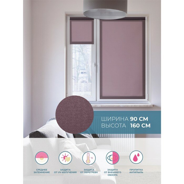 Рулонные шторы однотонные 90 см x 160 см Пыльная роза Плайн DECOFEST (Мини)