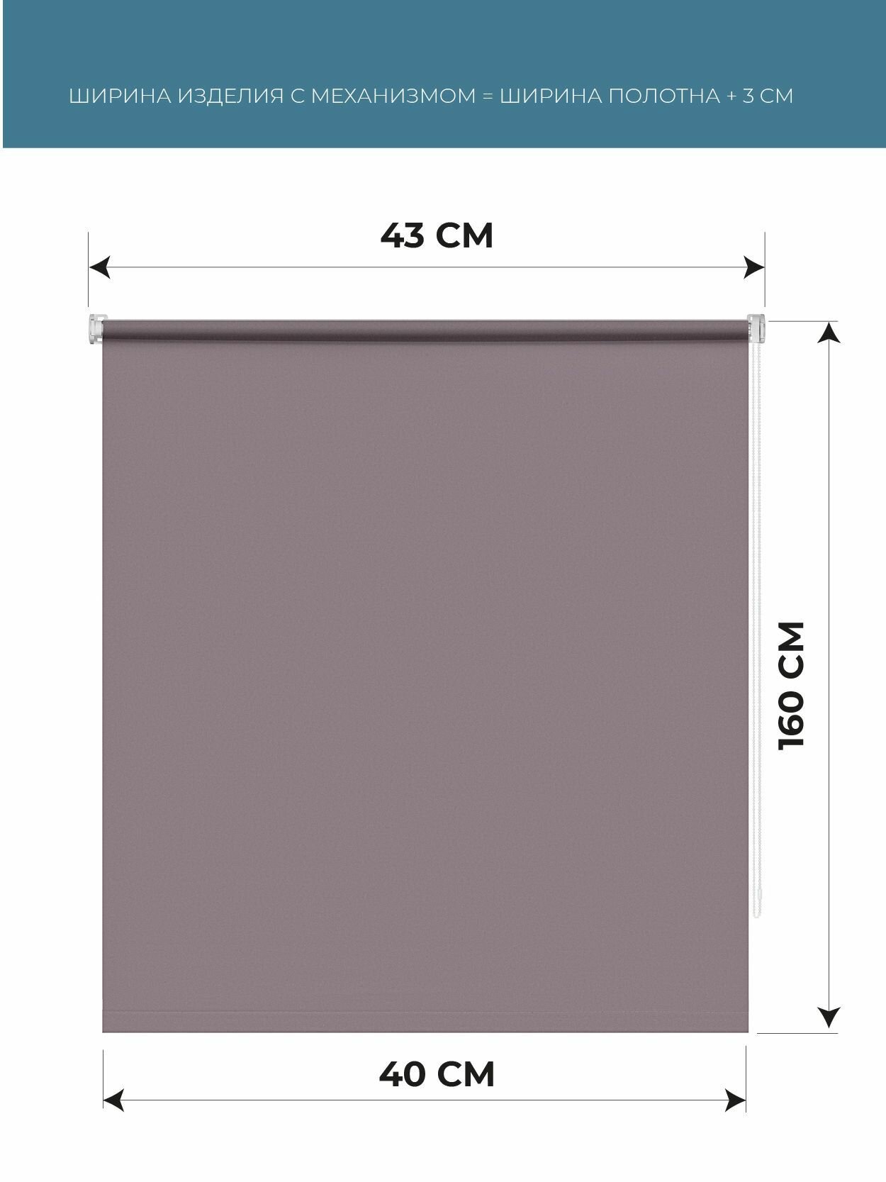 Рулонные шторы однотонные 40 см x 160 см Пыльная роза Плайн DECOFEST (Мини)