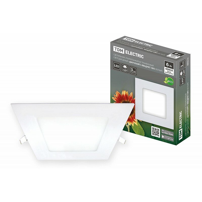 Светильник светодиодный ультратонкий встраиваемый TDM Даунлайт СВО 6Вт, 6500К, квадрат, белый