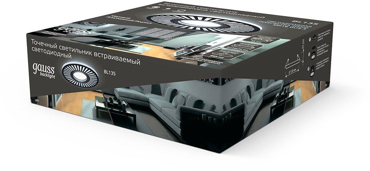 Светильник Gauss Backlight BL135 Кругл./узор. Черный, Gu5.3, 3W, LED 4000K 1/40 интересное: