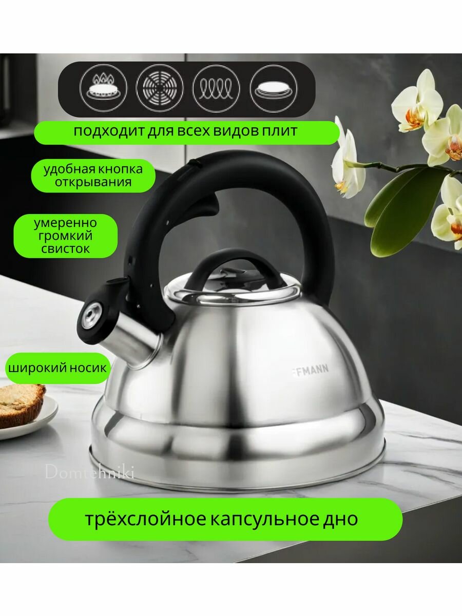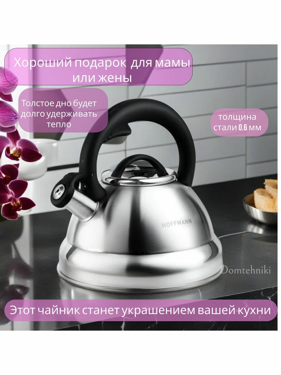 Hoffmann НМ 55198 чайник со свистком, черн. ручка, 3,0 л