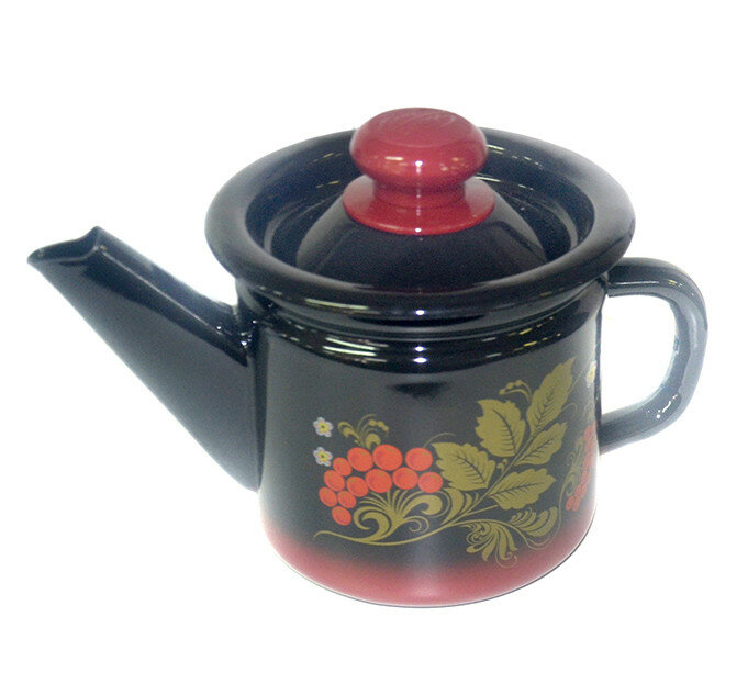 Чайник заварной 1 л декор красно-чёрный с пластм. кнопкой С2707.38 стальэмаль интересное: